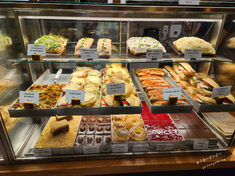 이 곳에서 많이 아침을 먹는다고 하였는데 종류도 다양하고 한국과는 다른 스타일의 빵이어서 맛도 좋았습니다. 샌드위치도 맛났고 페스츄리 류도 맛있었습니다. 커피도 물론 맛있게 먹었습니다. 저희는 숙소 옆 카를린 지구 쪽에서 먹었는데 지금 검색해보니 프라하 전역에 체인점처럼 있는 곳인것 같습니다.