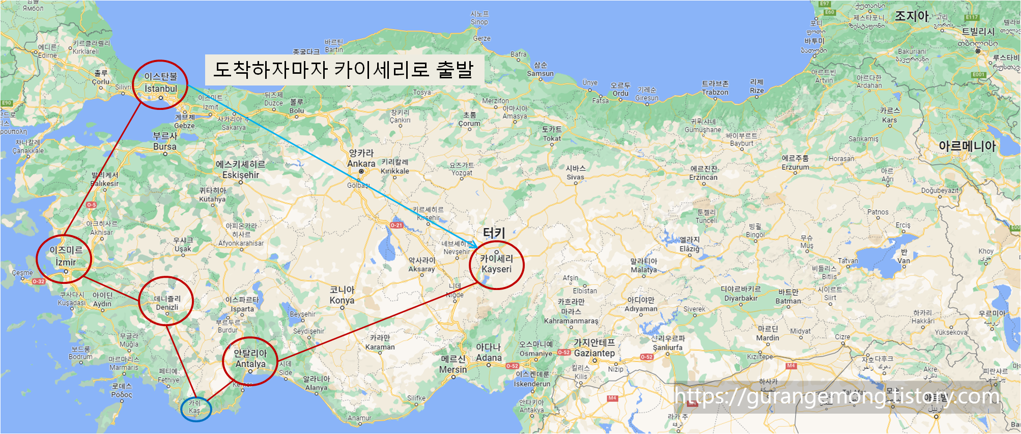 세세한 튀르키예에서의 국내 이동 일정은 다음 전체적인 루트 소개 후 다시 한번 말씀드리겠습니다.